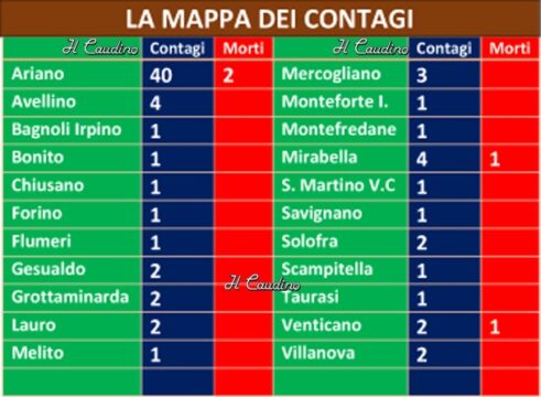 E’ una macchia d’olio che si allarga sempre più minacciosa. Non è solo il numero dei contagiati, ma anche il numero dei comuni coinvolti che crescono sempre di più. Vi proponiamo una mappa del contagio in provincia di Avellino per cercare di ribadire che dobbiamo restare a casa, uscire solo per le cose veramente essenziali. Solo in questo modo si può erigere un muro alla malattia e tentare di tenerla fuori dalle nostre case.