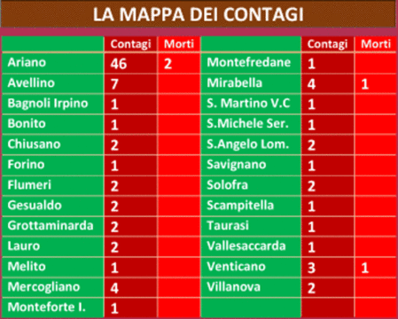 Irpinia: altri sette positivi al Covid-19, ecco il quadro paese per paese