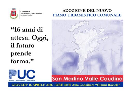 L’Amministrazione comunale di San Martino Valle Caudina, nel prossimo consiglio comunale di giovedì 16 aprile, annuncia l’adozione del nuovo Piano Urbanistico Comunale (PUC), segnando una tappa storica per il futuro della comunità.