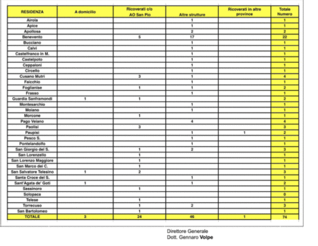 Il comune più colpito è il capoluogo Benevento con 22 contagiati, su questo dato avrà influito di certo il focolaio registrato nella casa di cura Villa Margherita.