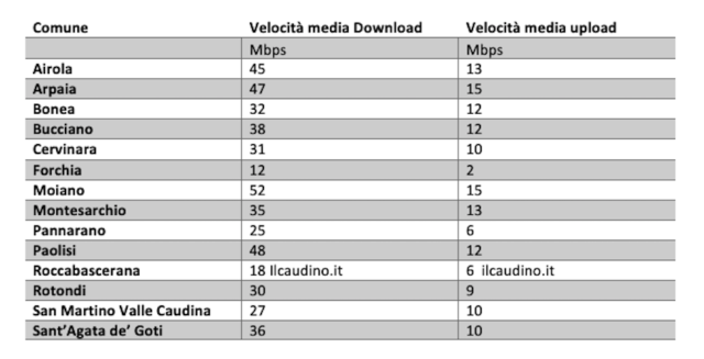 La fotografia paese per paese, che pubblichiamo a seguire, è decisamente sconfortante. Basti pensare che la connessione media in provincia di Avellino è pari a 139 in Download, valore decisamente lontano dalla media dei comuni caudini. Il lato irpino della Valle, infatti, registra Cervinara come valore massimo (pari a 31 Mbps in download e 10 in upload); valori decisamente lontani dalla media provinciale.