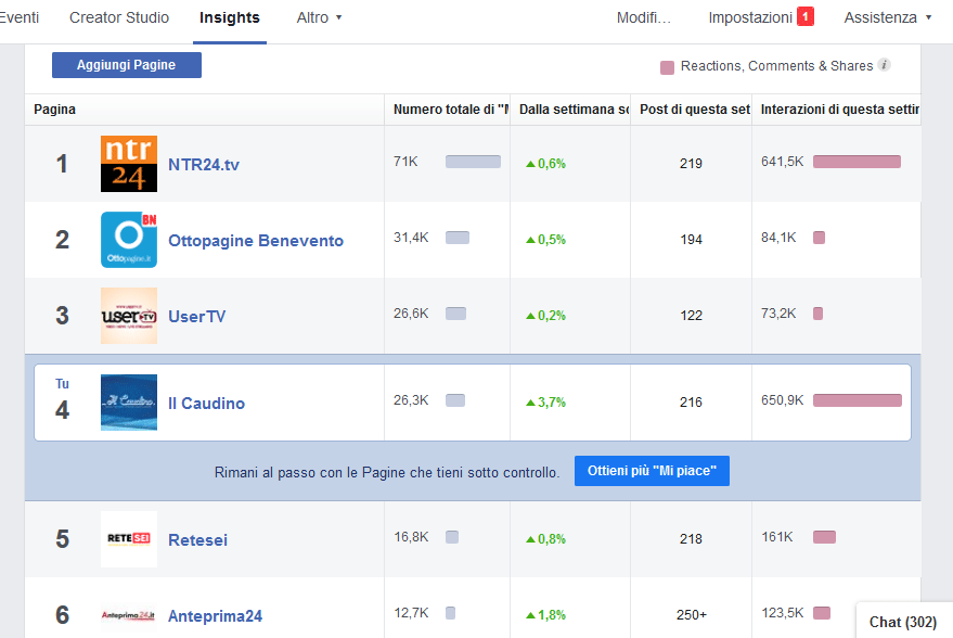 Nella settimana considerata, infatti, Il Caudino.it ha registrato oltre 650mila interazioni su Facebook ponendosi come uno dei siti più seguiti a cavallo delle province di Avellino e Benevento. Queste interazioni hanno generato una copertura dei nostri post pari a 1 milione e 270mila profili social. Un vero record per il quale dobbiamo ringraziare tutti voi.