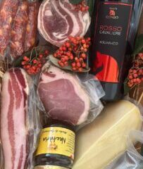 Segnatevi il numero perché vi potrebbe essere utile anche per un bel regalo di Natale, un regalo diverso buono e gustoso. La Cucciarda prepara dei cesti strepitosi a base dei propri prodotti. Anche gli insaccati sono preparati con cura da Amedeo e dai suoi collaboratori. Ed anche per i maiali, il giovane macellaio va alla ricerca degli animali, cresciuti in modo naturale.