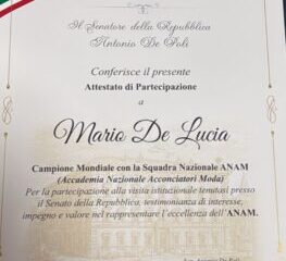 Badate, si tratta di riconoscimenti molto ambiti e cui è stato dato il giusto lustro dal Senato della Repubblica. I componenti dell’Anam sono stati in visita alla Camera Alta su invito del senatore casertano Antonio Poli che è anche questore del senato.