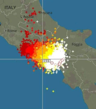 Nelle foto la notevole ampiezza del temporale avutosi questa notte, da notare per quanti km si sia esteso, con annesse fulminazioni nel secondo scatto satellitare, giunto poi sul nostro territorio.